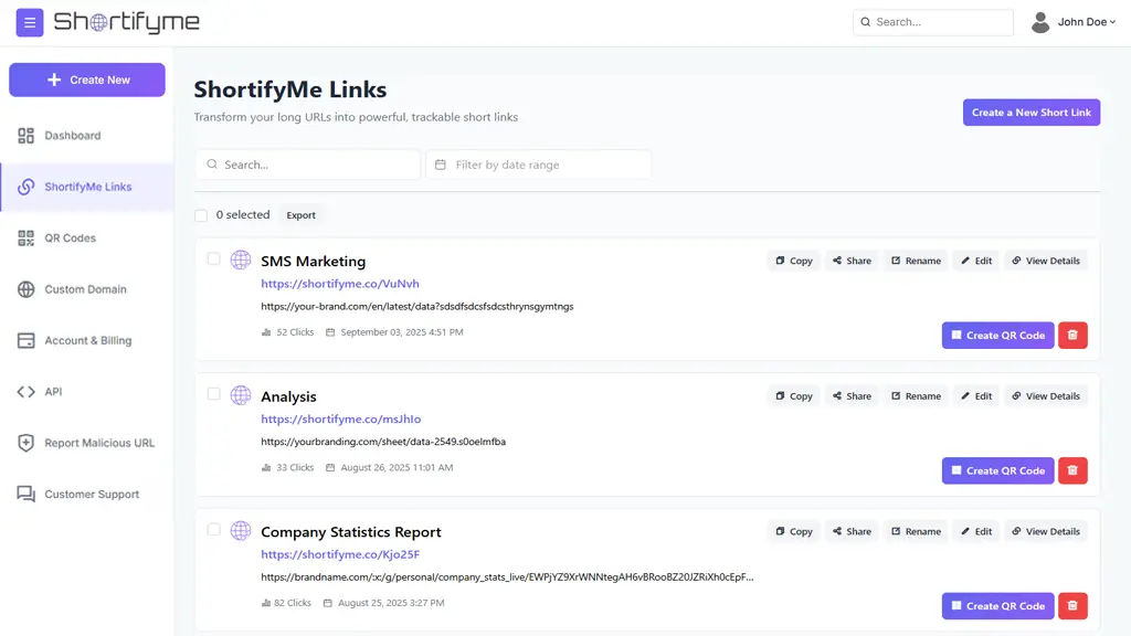 ShortifyMe provides a centralized platform to manage all your shortened links. Say goodbye to scattered links and hello to a well-organized link library.